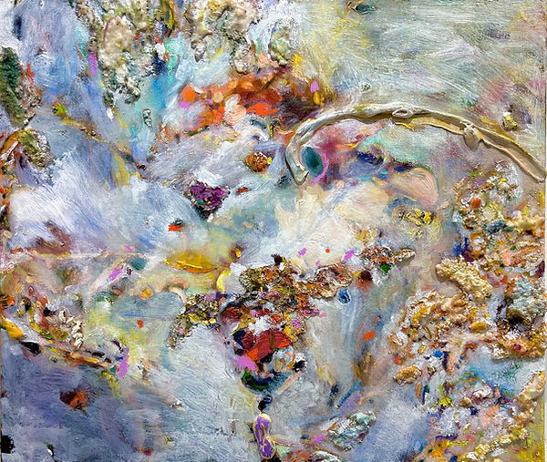 この作品は、そうした変化の瞬間を留めながら、形がほどけ、新しい世界へとひらいていく景色を描きました。
